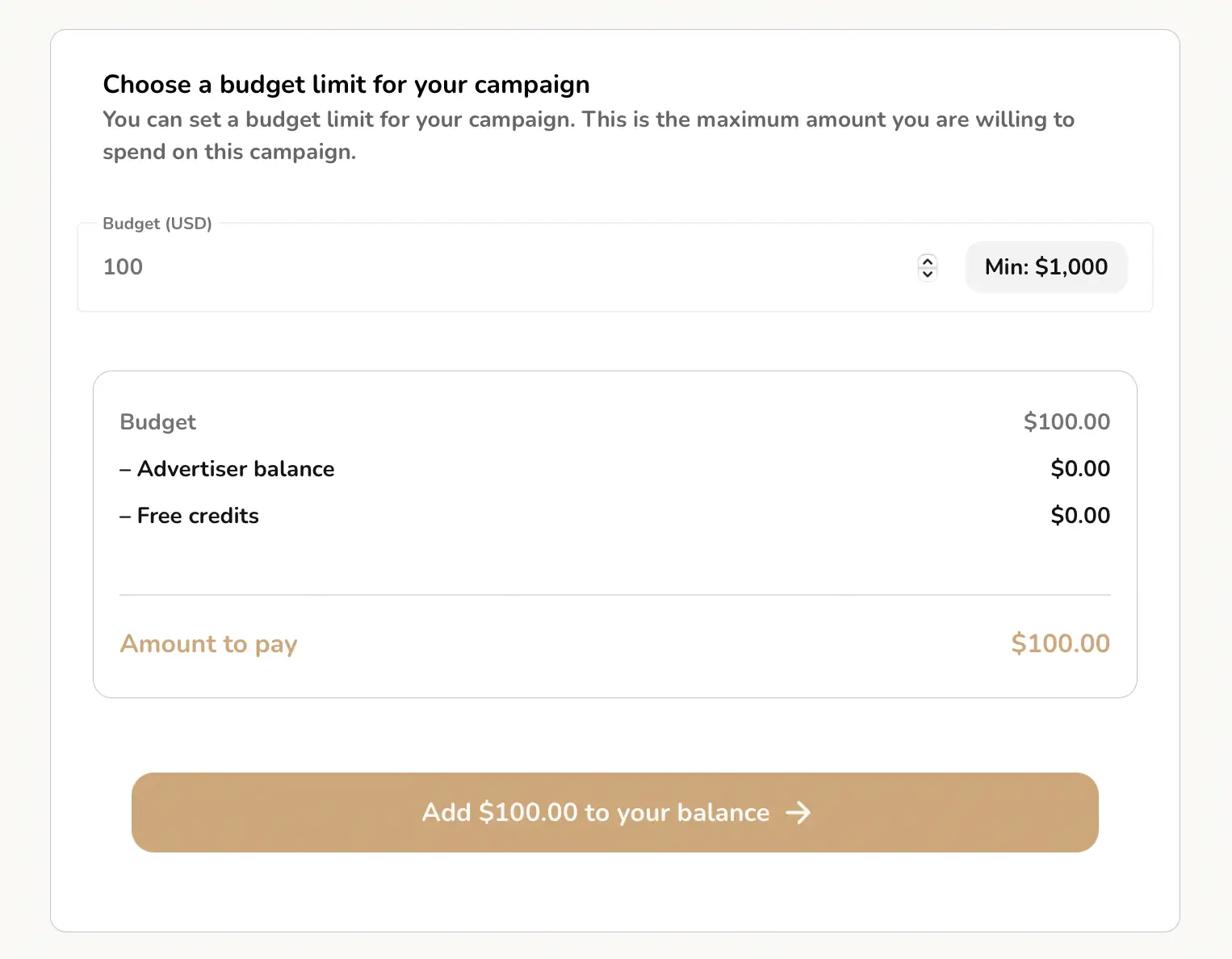 Your budget will then be allocated to your campaign and will only be spent when you receive clicks or leads.