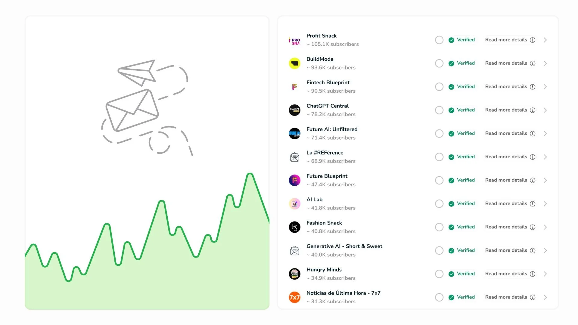 Every newsletter is vetted through our advanced verification system. You don’t just buy subscribers — you buy a proven, engaged audience you can rely on.
